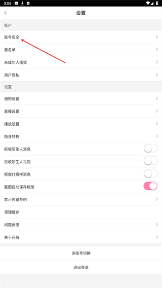 3、在设置页面中找到账号与安全选项并点击,进入账号安全的操作界面。