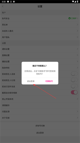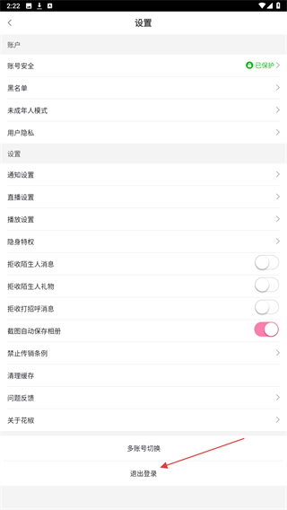 3、在设置的界面内,点击最下方退出登录的按钮。
