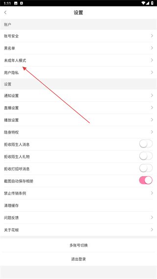 3、进入设置的界面内,点击未成年人模式的按钮。