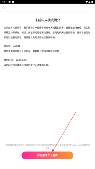4、了解该模式后,再点击下方开启未成年人模式即可。