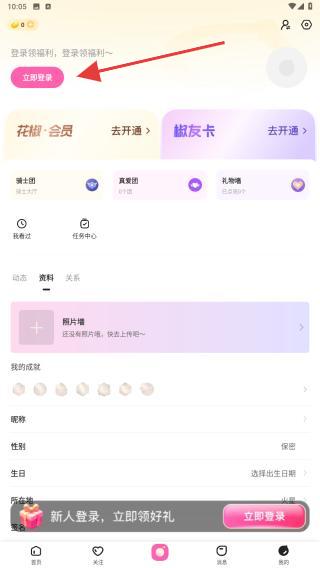 2、进入个人主页内,点击立即登录的功能按钮。