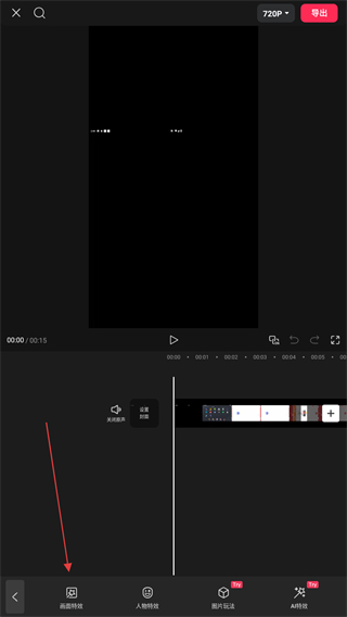 4、进入特效的页面内,点击画面特效的按钮即可完成。