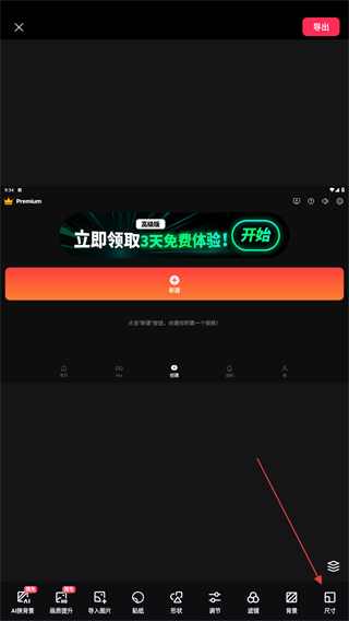 3、进入图片编辑的页面内,点击工具栏中尺寸的功能按钮。