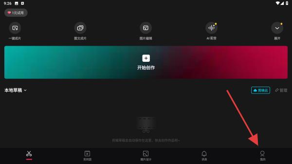 1、打开剪映的应用,进入首页点击开始创作的按钮。