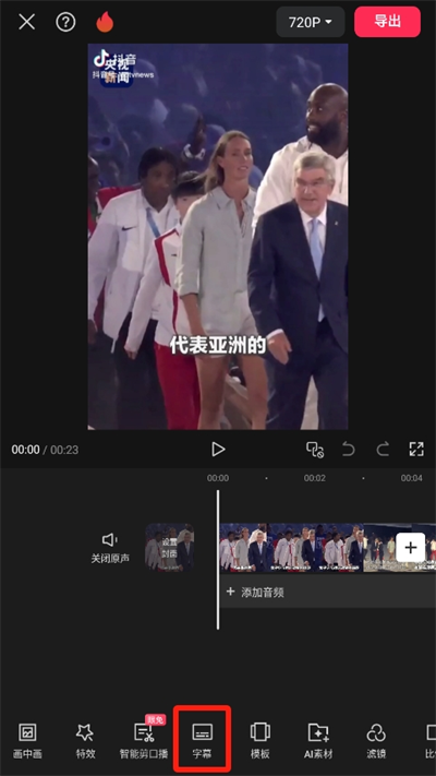 1、我们直接在最下方看到字幕这个功能,点击进入针对视频字幕进行编辑;