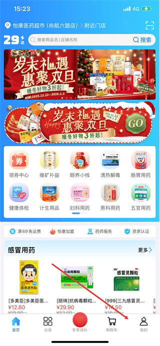 1、打开怡康到家APP,点击底部导航栏的我的选项。