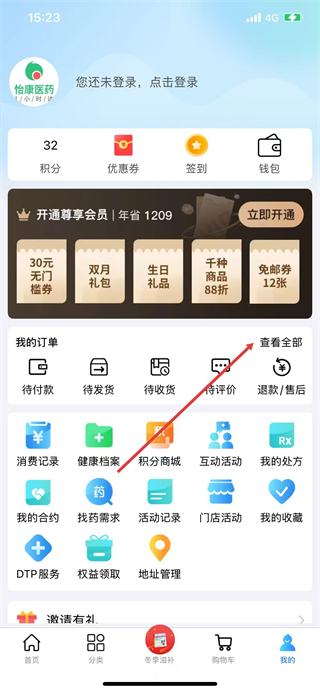 1、打开怡康到家APP,点击底部导航栏中的分类。