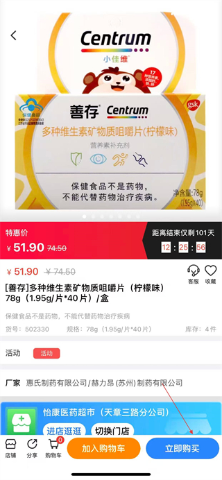 3、在药品详情页,点击立即购买,即可完成操作。