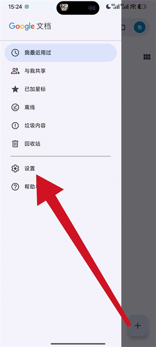 2、在展开的侧边栏中,找到并点击设置,进入设置页面。