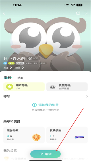 3、进入个人信息的页面内,点击下方编辑的功能按钮。