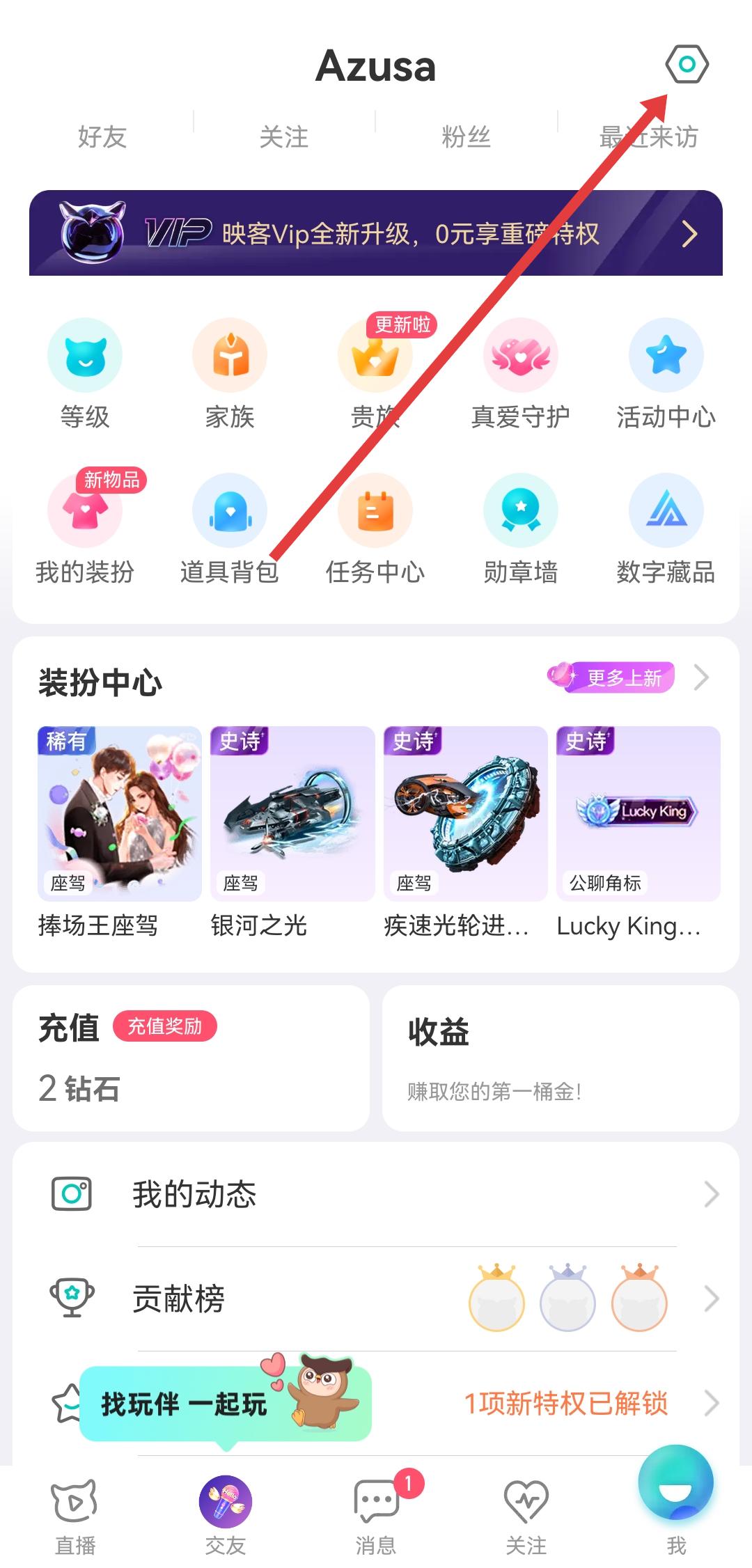1、打开映客直播APP,进入我的个人页面,点击右上角的设置图标,进入设置界面。