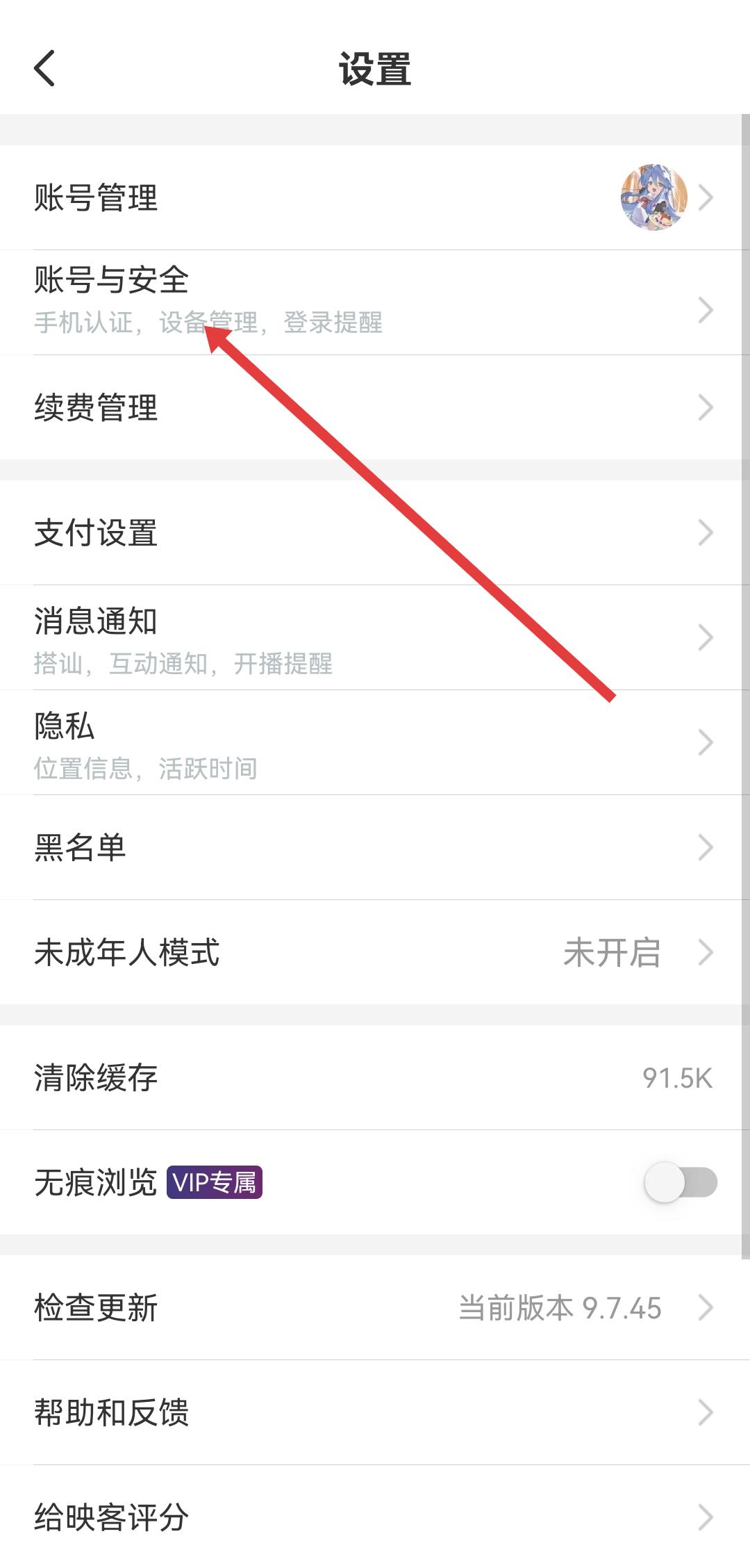 2、在设置页面中,找到账号与安全选项并点击,进入账号安全相关设置页面。