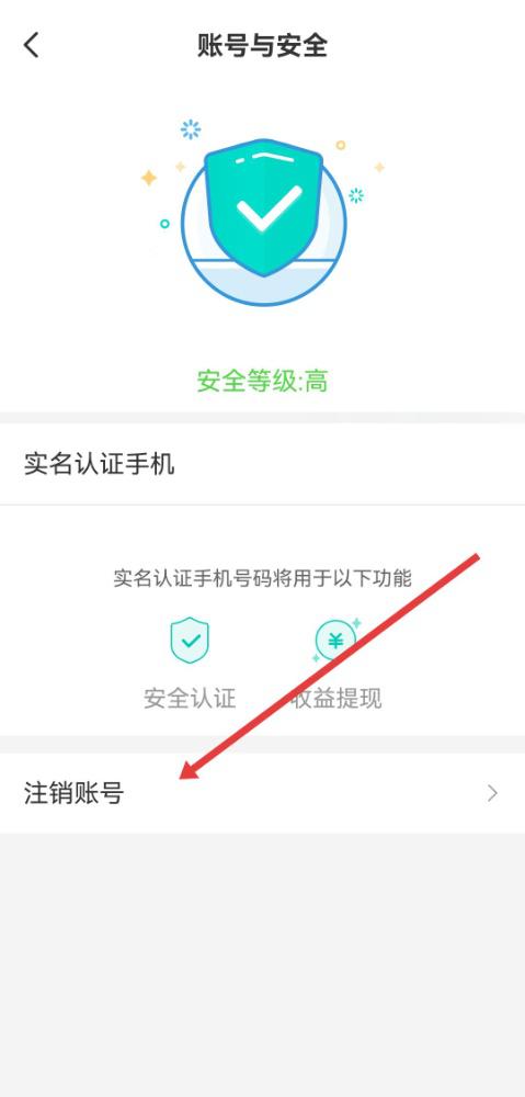 3、进入账号与安全的页面后,点击注销账号的选项,进入账号注销流程页面。