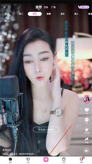 1、打开花椒直播主界面,点击底部的图标。