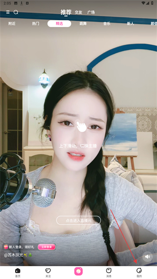 1、启动花椒直播APP,在推荐的页面内点击右下角我的图标。