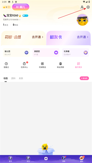 2、在我的页面内,点击右上方设置的功能按钮。