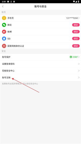 4、在账号与安全的页面内,点击下方账号注销的按钮即可。