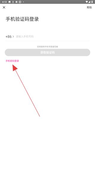 3、在手机验证码登录的页面内,点击手机密码登录的按钮。