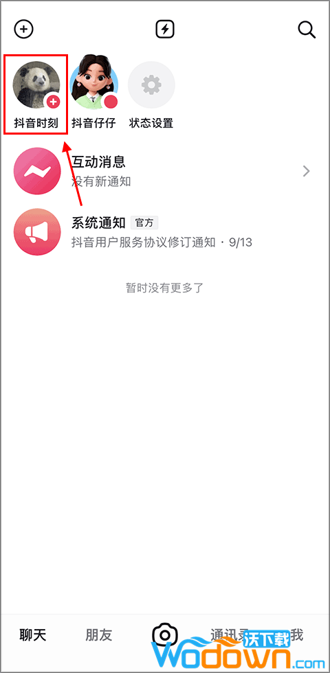1、在聊天界面下拉或点击顶部【抖音时刻】;