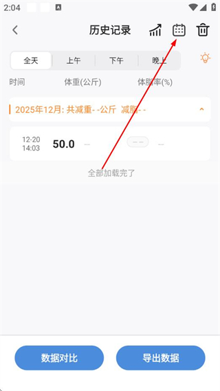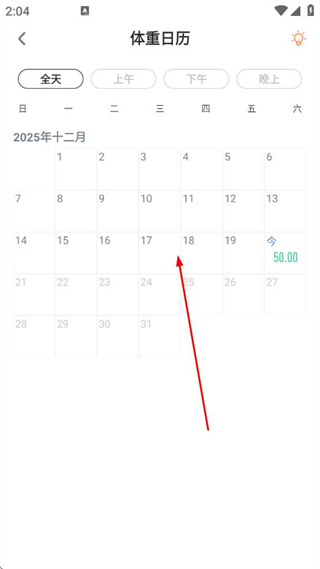 3、在体重日历页面,即可查看对应日期的历史体重数据。