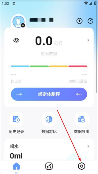 1、打开OKOK体脂秤APP,点击底部导航栏的设置图标。