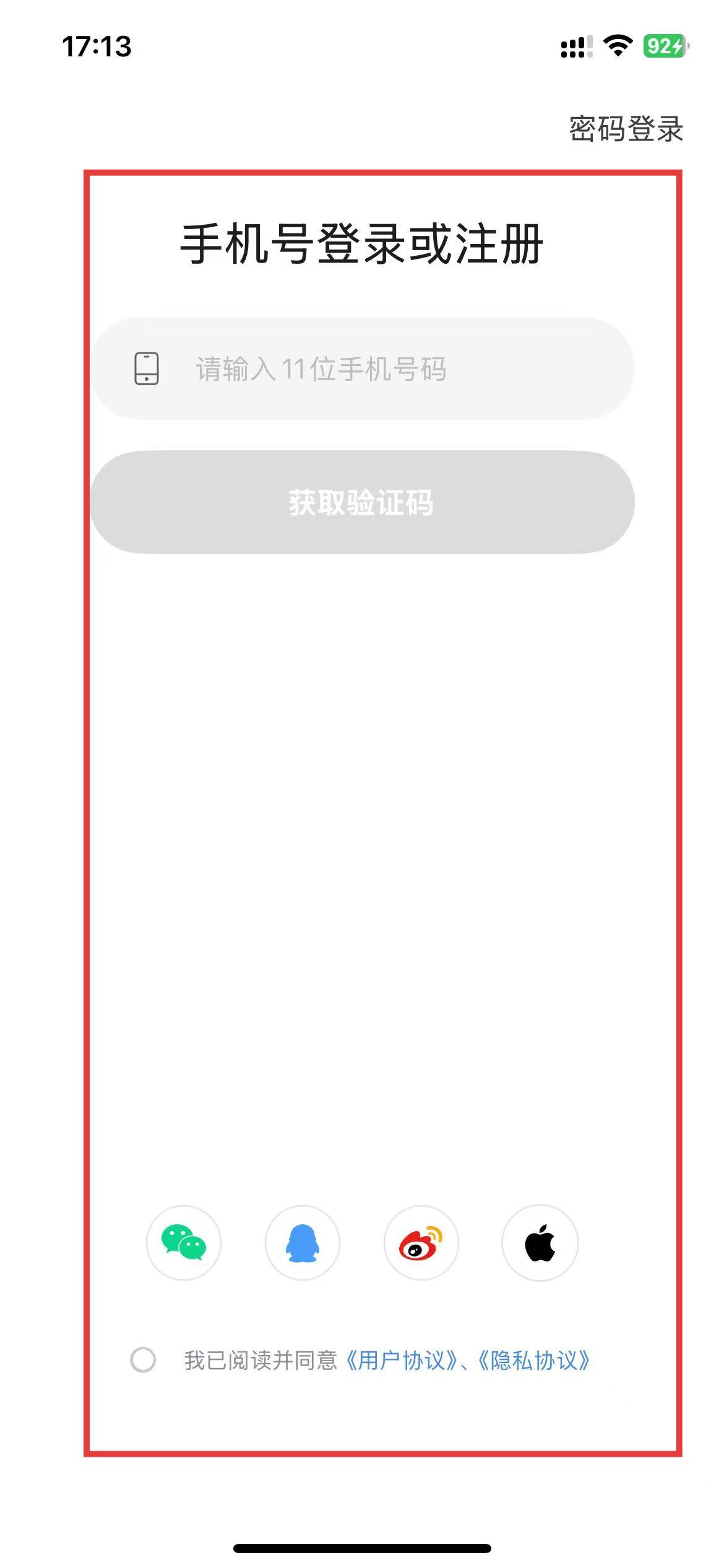 1、打开0k0k体脂秤对应的APP,选择需要的登入方式。