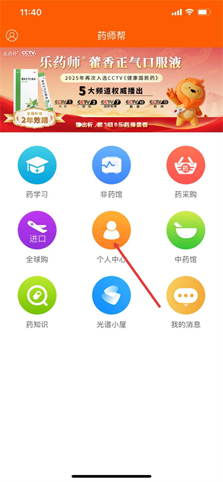 1、打开药师帮,在主页面点击个人中心选项。