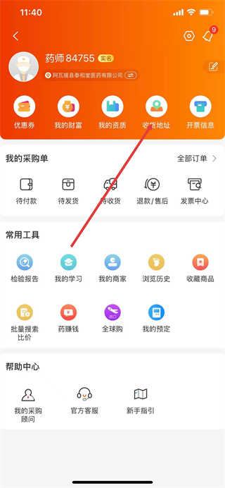 2、在个人中心页面点击收货地址选项,进入收货地址页面。