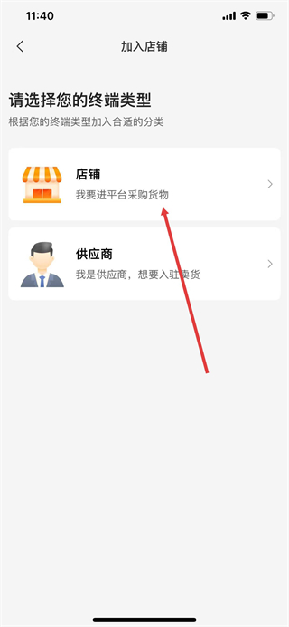 4、进入加入店铺页面后,选择店铺选项。