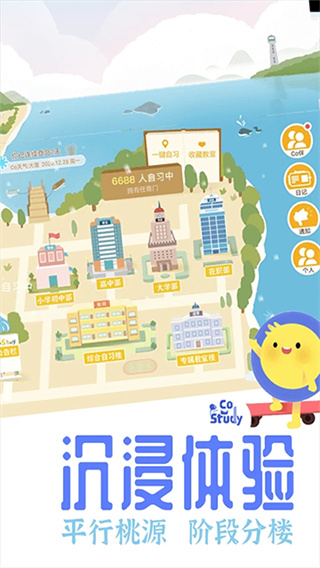 1、沉浸场景与陪伴学习的双重赋能,通过虚拟校园场景构建与多人在线陪伴机制,既解决了独自学习的孤独感,又利用场景沉浸感减少分心,让学习从被动坚持变为主动投入。