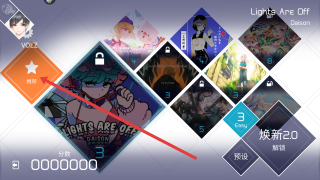 3、接着选中图片中央已解锁按钮,打开已解锁曲目,即可选择喜欢的音乐开始对应音乐游戏。