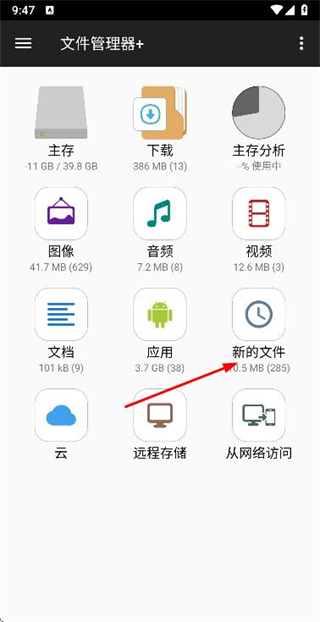 1、在文件管理器+首页点击新的文件选项,进入新的文件页面。