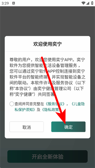 1、在欢迎使用奕宁弹窗,点击确定,进入登录页面。