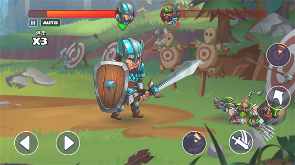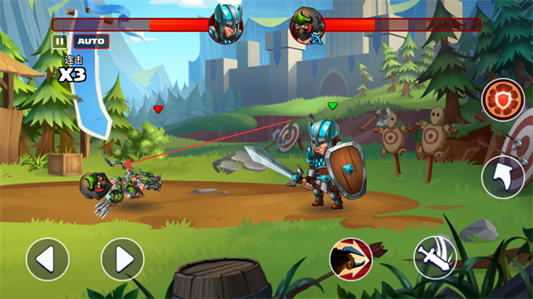 1、操控角斗士战斗,触发连击X3效果,使用技能攻击敌方单位,推进对战。