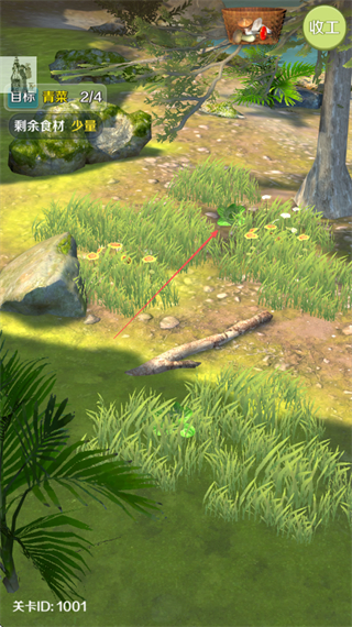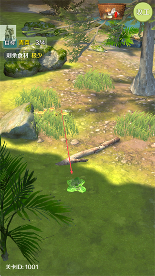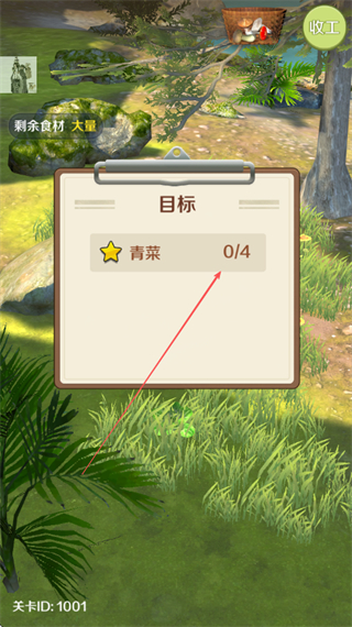 1、查看目标需收集4份青菜,在场景的草丛区域寻找青菜资源。