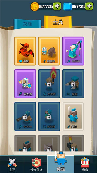 3、英雄与士兵:解锁不同的英雄和士兵类型,完善阵前阵容搭配,提升战斗力。