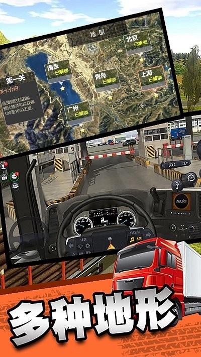 1、拟真驾驶系统:精确模拟卡车重量分布与惯性效应,空载与满载状态操控手感差异显著。