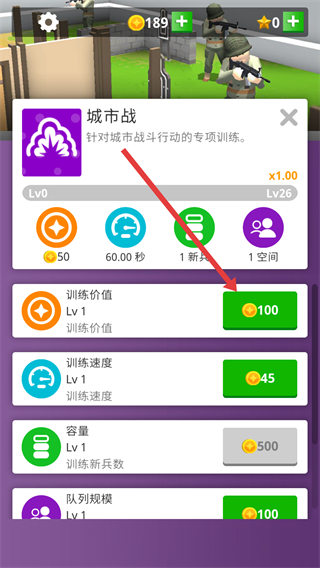 3、消耗金币点击训练价值升级按钮,提升设施效率。