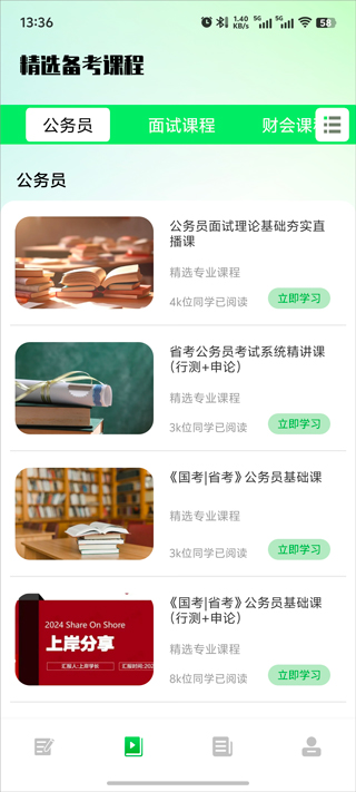 3.还专门提供了视频咨询服务,与公务员考试的有关的大量优质的视频咨询,你也可以免费观看。