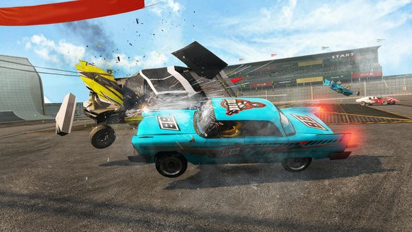 3、真实损伤表现:赛车的引擎盖、车门等部件会随着碰撞产生变形脱落,严重的损伤会导致特定功能失灵影响操控。