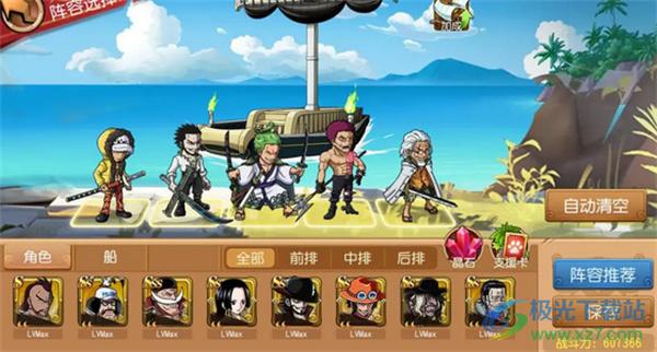 1、主流最佳阵容:突破罗(能量)+大剑豪·米霍克(物穿)+佐罗十郎(物穿)+突破卡塔库栗(物穿)+突破雷利(物穿)【船技:棺船】