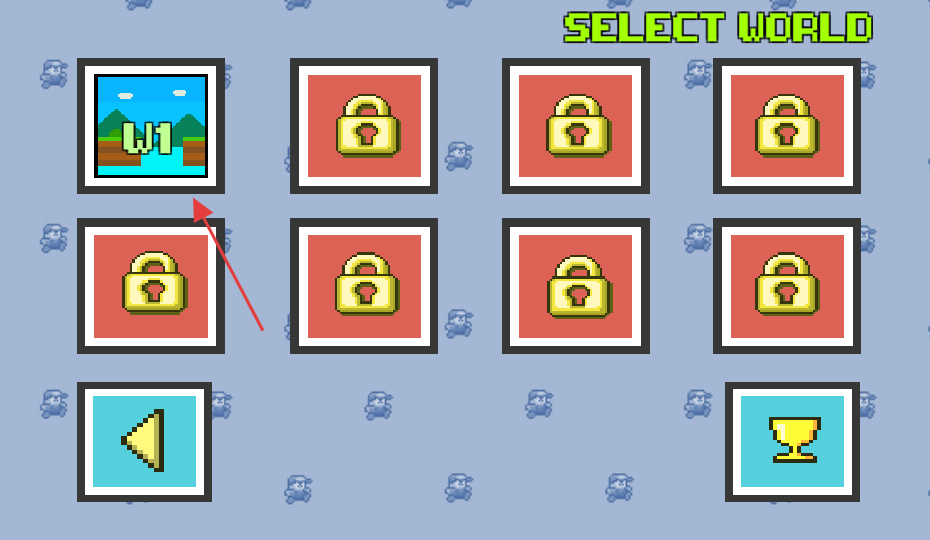 3、进入选关页面,选择【W1】世界图标,开启游戏第一关。