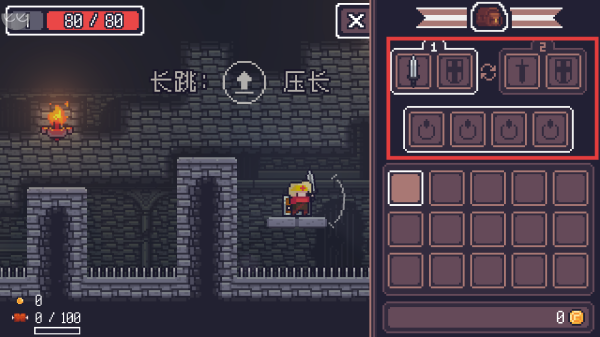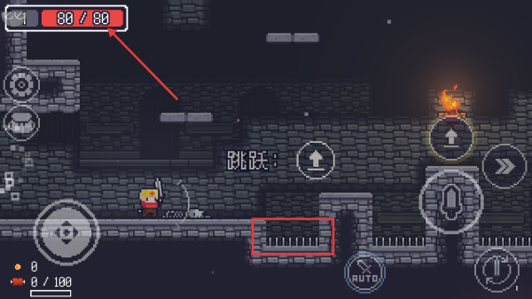 2、关注角色状态,时刻留意屏幕上方的生命值(80/80),避免角色受到伤害。遇到尖刺等陷阱时,利用跳跃等操作躲避,确保生命值安全。