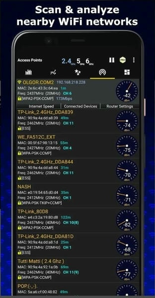 8WiFi Analyzer能为用户的手机提供便捷的WiFi管理功能,只需将自己的手机连接到指定WiFi后,软件就会对网速的信息进行实时分析,并将各项运行参数全部推送到手机当中,你还可以查看最佳的WiFi通道,设置好对应的频道之后,手机的上网速度就会大幅度飙升。