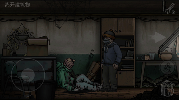 1、进入游戏后,可根据提示屏幕下方的提示,玩家需要操控角色寻找避雨处,推进剧情以逃离危险环境。