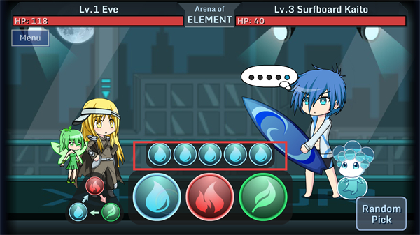 4、点击【红色框】内水元素区域,可借助水元素发起攻击。