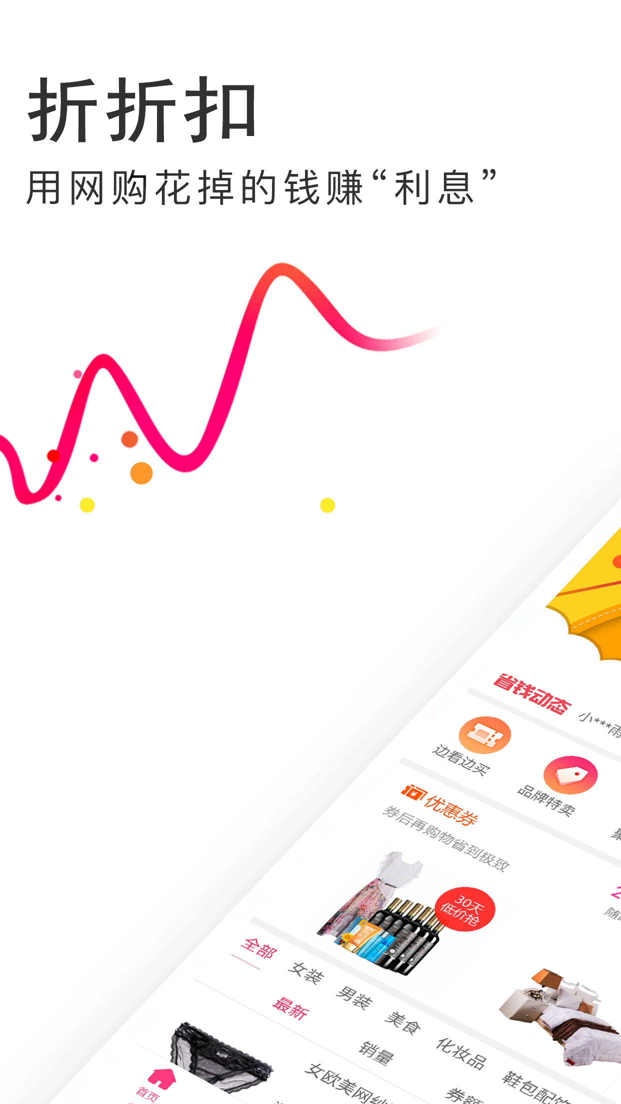 折折扣是一款非常实惠的省钱购物平台。软件汇集了海量优质商品,各种类型的商品都可以在这里找到,满足用户的购物需求,这里还有超多的优惠服务,购物返利活动,让用户购物更省钱,非常好用,快来下载体验吧。
