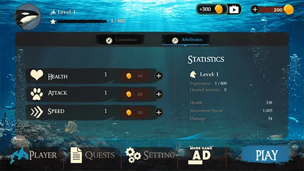 3. 战斗技能可提升,与其他野生动物展开终极对决,在残酷海底展现实力。