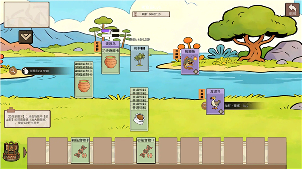 1)食物卡的主要产出方式是空投防守玩法,前期初级麻醉卡和饲料卡的制作难度低,通过驯服新的恐龙获得饱食度满的恐龙更效率,然后也可以利用已经消耗完饱食度的恐龙凑齐8张队伍后尝试只防守前面几波结算奖励物资箱。