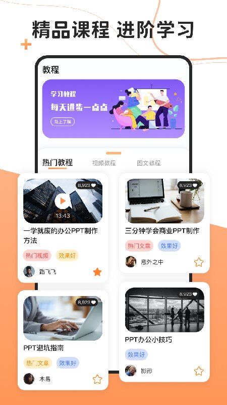 使用起来比较简单,超多ppt高手教程,让你能够轻松的成为ppt达人,各种各样的模板和工具,你都可以免费使用,轻松一键就可以进行背景的调换,多种不同的图形,你可以任意的进行选择,让用户仿佛随身携带了一个稿件工作台,在赶时间的时候用模板快速起步很有安全感,做着做着会想把内容一页页打磨得更清楚,尤其适合经常要改汇报、做答辩或临时加页的人,拿安卓手机也能把节奏掌控住。